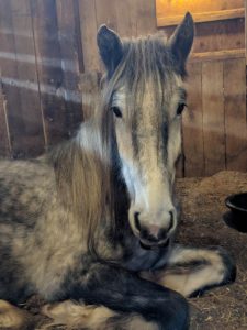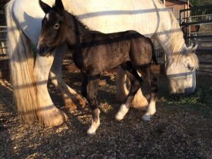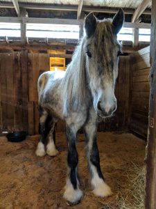 Shire Stallion Finn – note how his color changes from black to gray as he matures: