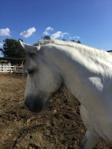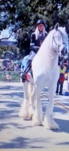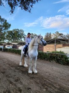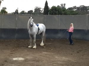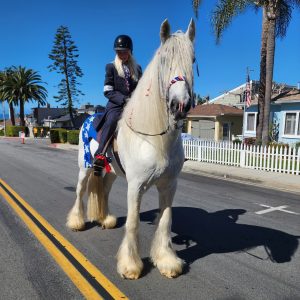 Stabled at Rancho Sierra Vista, San Juan Capistrano, Finn is in training for parades, saddle and harness events. (owner Sharon Dugan up)